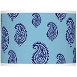 A classic hardback style drum shade. Comes with a chrome finish fitter. Includes matching harp and finial. Spider fitting. U.S. Patent # 7,347,593. Spider fitting. Paisley rain giclee shade. Shade is 13 1/2" across the top, 13 1/2" across the bottom, and 10" high..../ Paisley Rain Giclee Shade 13.5x13.5x10 (Spider) / Rain Lamp